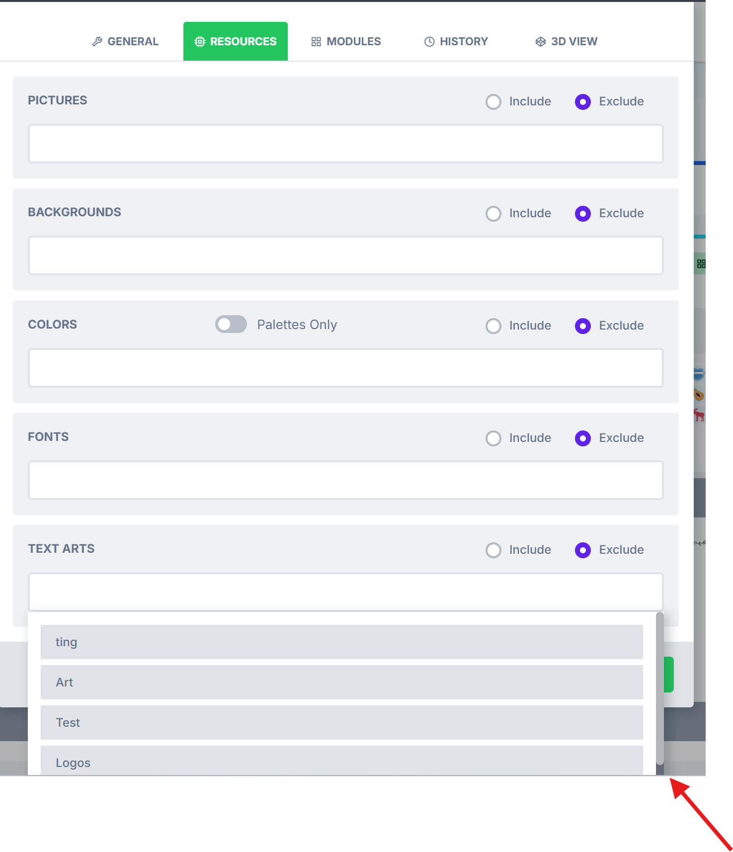 Scrollbar to the end of Resource Page - The resource page was cutting off at the bottom of the page and it wasn't possible to see anything at the bottom. We added a scroll bar in order for admins to see the list of resources in the list. Please refer to the image below: